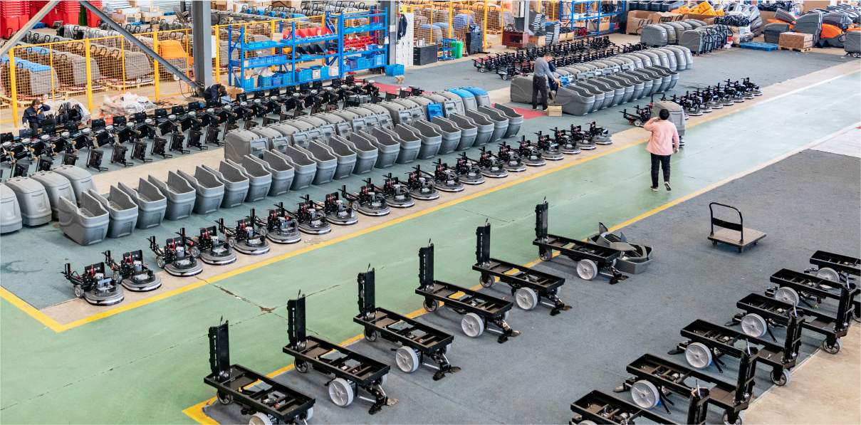 依托先進生產智造技術,開發工業清潔設備、倉儲設備、園林綠化設備、商用清潔設備四大生產基地。